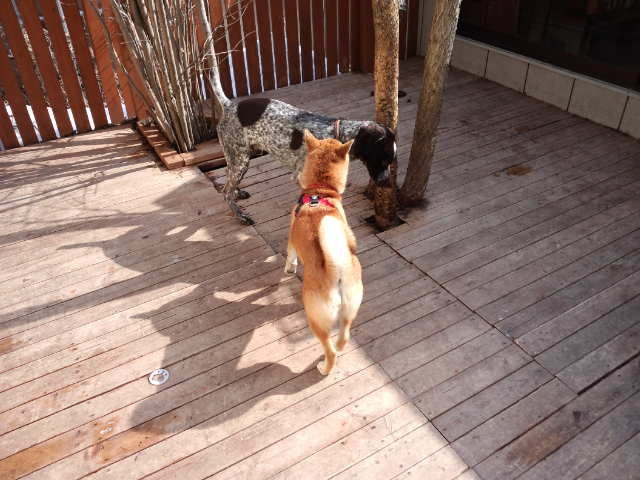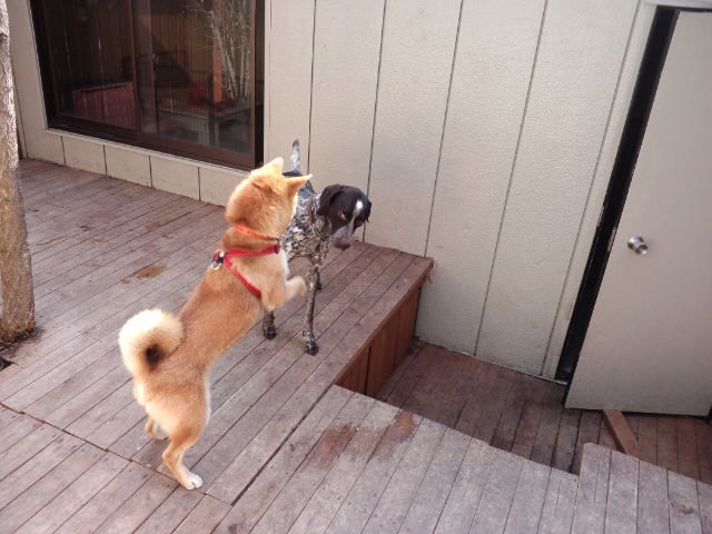 日中は日も出て暖かい軽井沢、ポインターのモス君が遊びにきました。