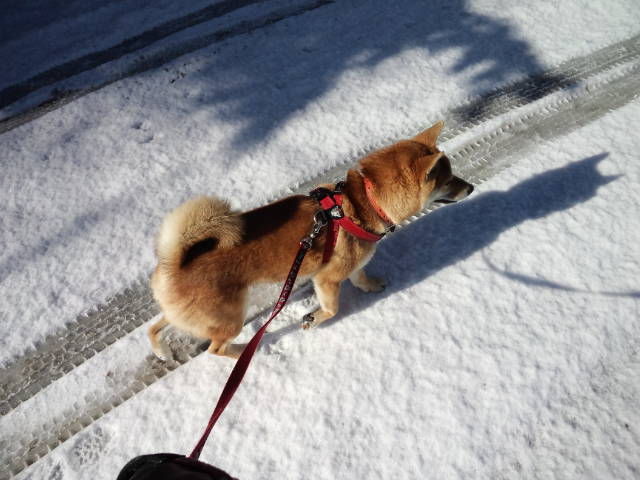 夕べは雪が少し降り、雪が大好きなハチ君は大喜びかな?