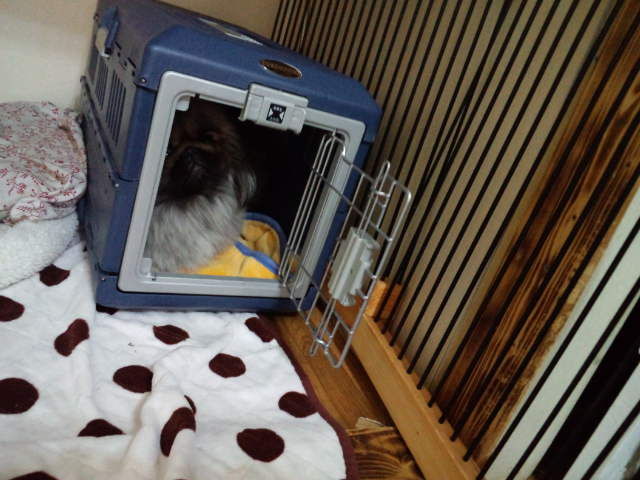 ペキニーズのニモ君は写真を撮ろうとしたらハウスに入っちゃいました。