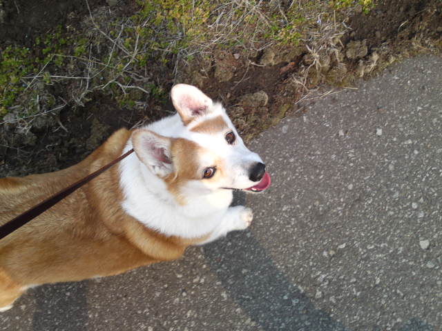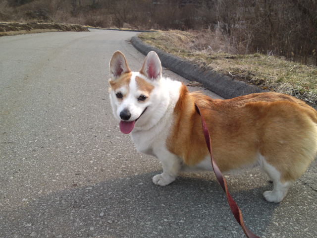 スタッフBと良い子で歩くナナちゃん。時折遠くを眺めるのは飼い主さんを思い出しているのか…? 元気にしてますよ。