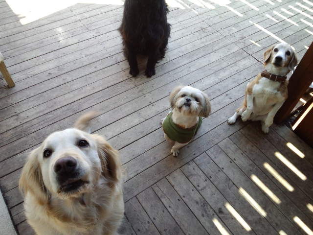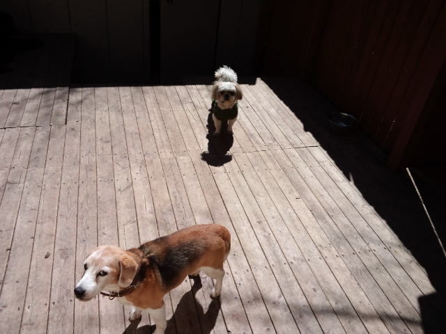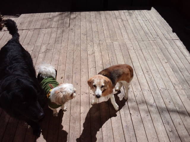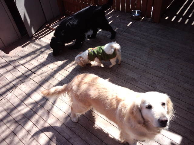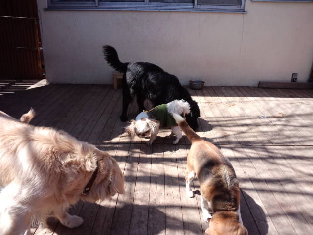 他のわんこ達はデッキで遊んでます。