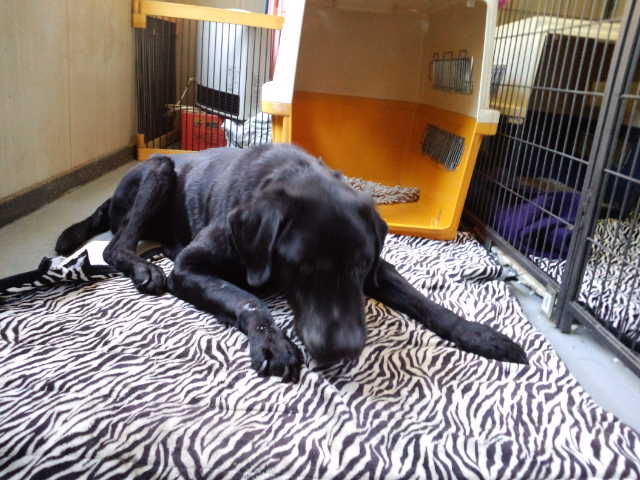 ブラッキー爺さんは暖かいのに犬舎でお昼寝です。
