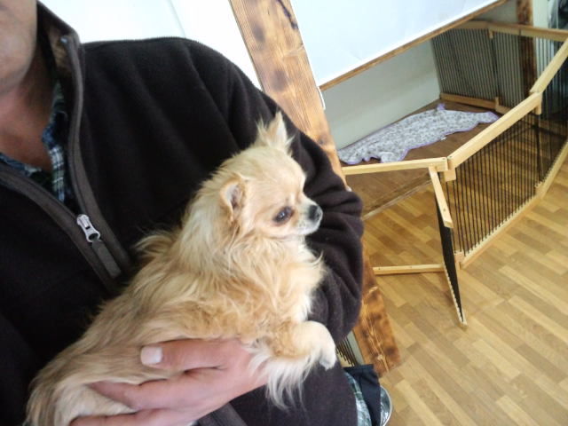 チワワのリノ君もサークルから出てきました。みんなとも仲良くしてます。