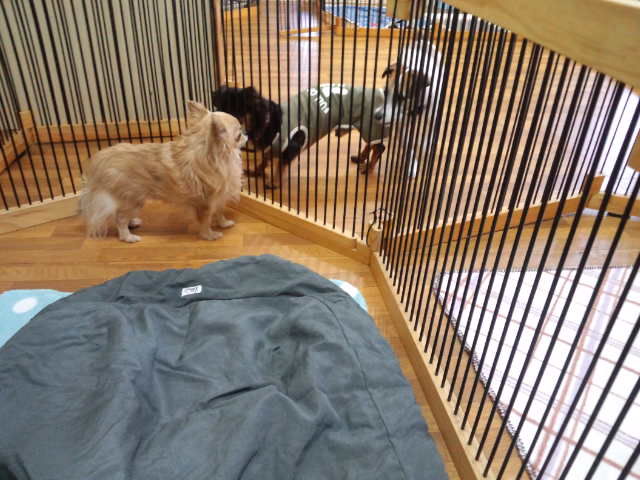 グリ君も他のワンコは?との事、サークルの中でのお預かりです。