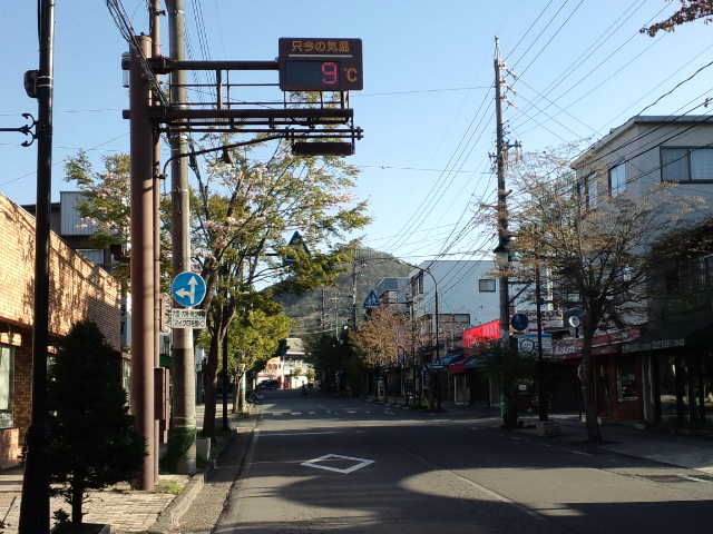 今朝の軽井沢の気温は9℃、天気は快晴で行楽日和です。