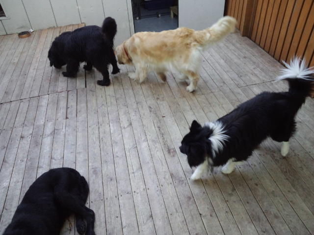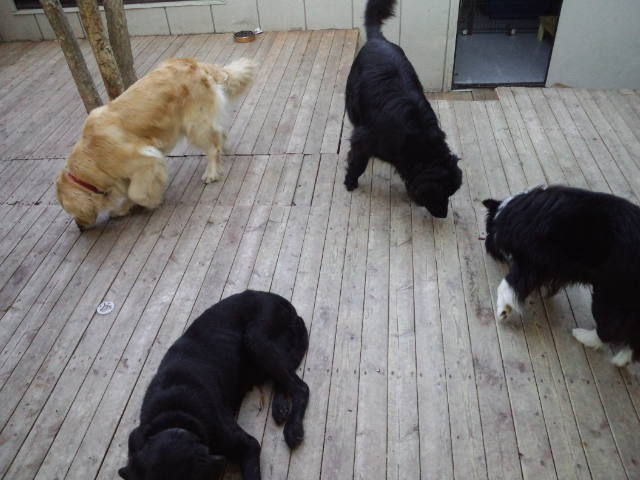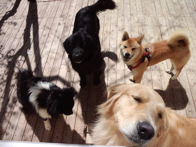 大型犬エリアでは仲良しの5匹組、陽気も良い今日は気持ちよさそうです。