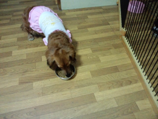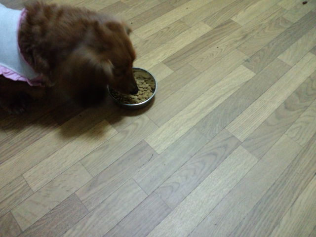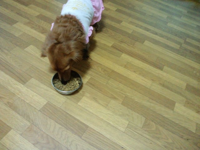 ダックスのピッピちゃん、夕べのご飯は半分くらい食べてました。今朝は少し口を付けただけです。