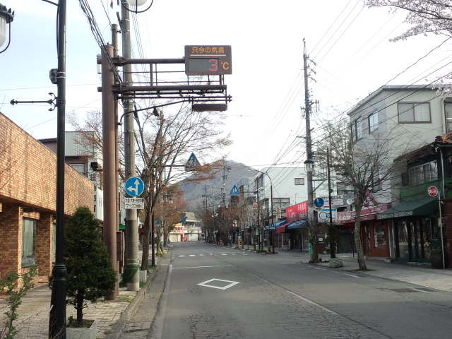 今朝の軽井沢の気温は3℃、天気は晴れてます。