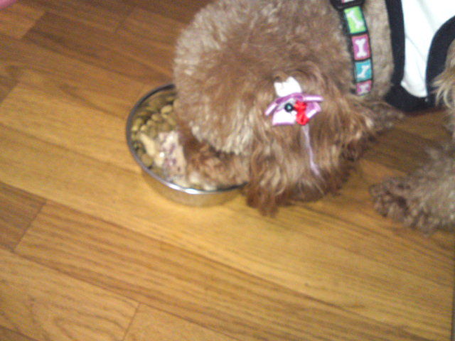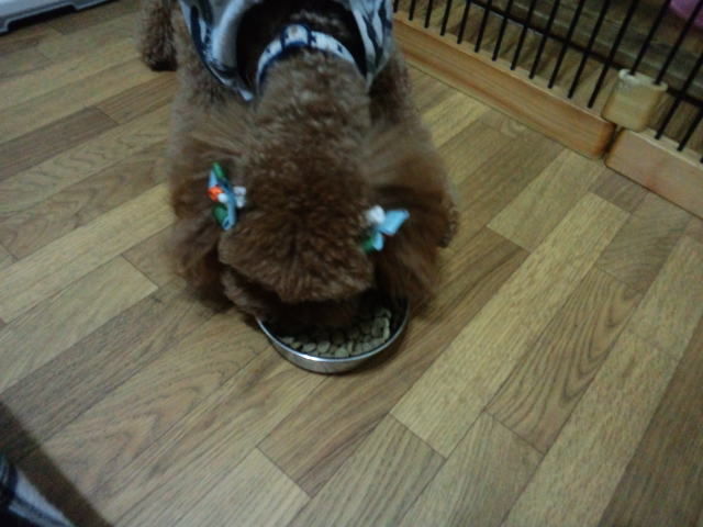 トイプーちゃんズのミルキー君は完食しました。モコちゃんは口を付けません。 ダックスのココアちゃん、しっかり完食しました。