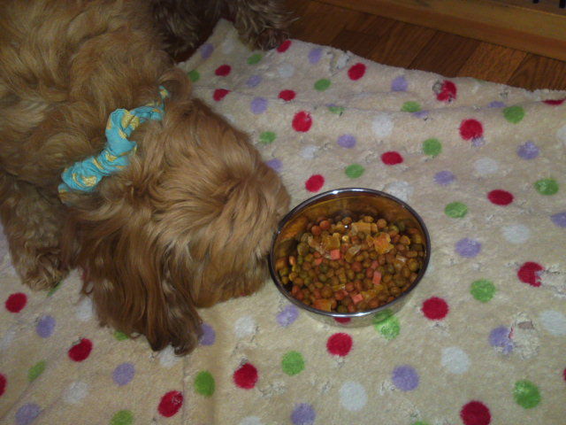 ダックスのキャンディちゃん、少しずつ食べてます。