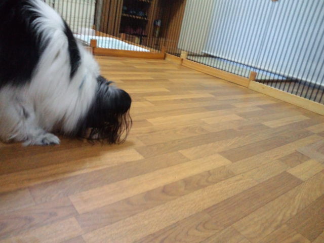 クッキー君はまだ5カ月のパピー君です。まだ遊びたい盛りで小型犬エリアでは遊び相手がいない…。