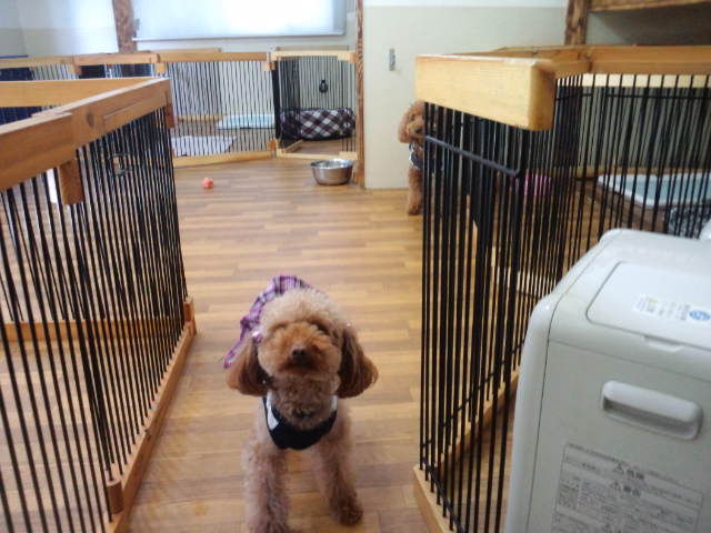 小型犬エリアはみんなチェックアウトし、居残り組のトイプーちゃんズのミルキー君とモコちゃんです。ノンビリ出来て良いかな?