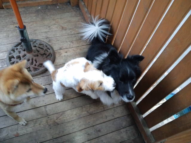 柴のハチ君や大治郎とはもちろん大の仲良し、しかしジャック・ラッセルパピーのクッキー君からは熱烈歓迎されてます。