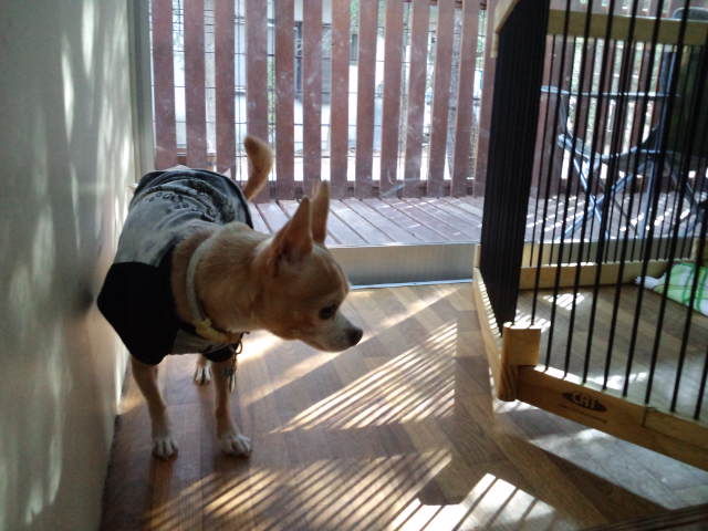 飼い主さんの後を追って、少し淋しげなぐー君です。