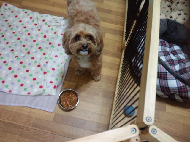 トイプーちゃんズのミルキー君、しっかり完食しました。モコちゃんは缶詰めを少し食べただけです。