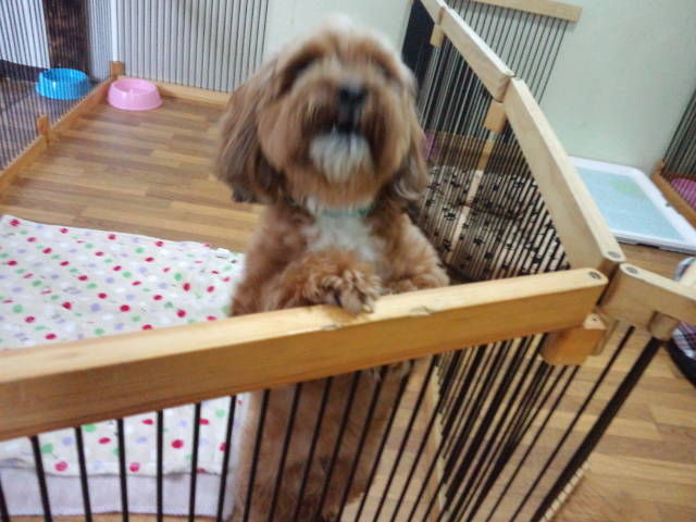 ハッピー君は他のワンコが?との事、サークルの中に居てもらいますね。
