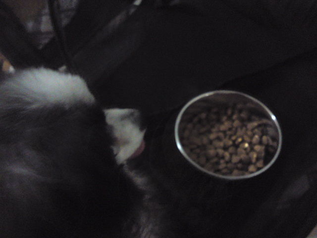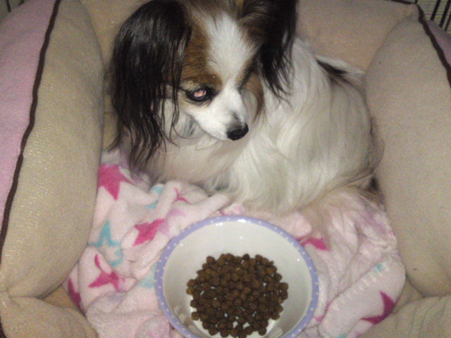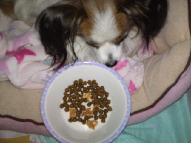 ミックスのメイちゃん、口を付けません。おやつのジャーキーは食べてます。