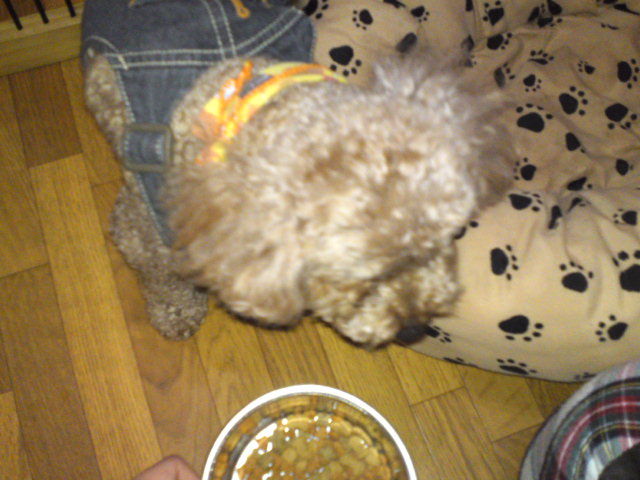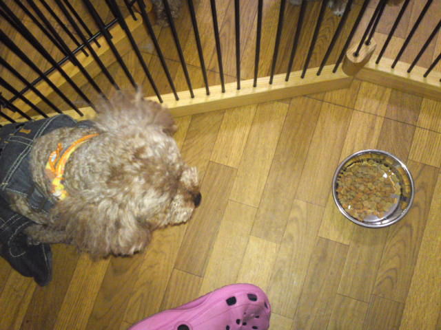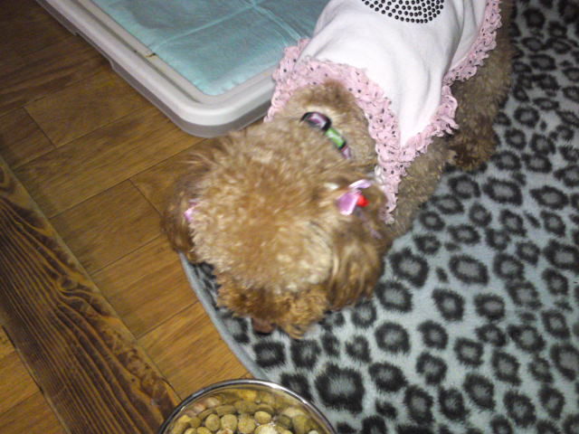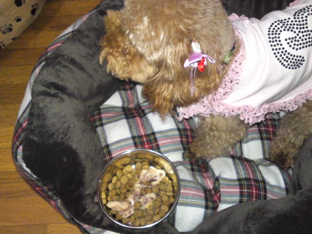 トイプーちゃんズのモコちゃん、口を付けません。ミルキー君はしっかり完食しました。