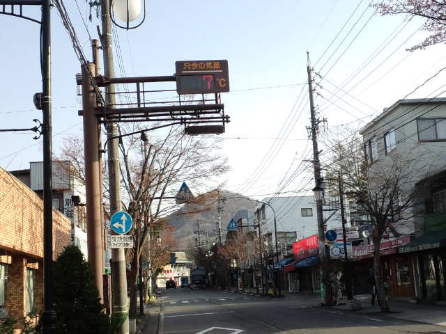 今朝の軽井沢の気温は7℃、天気は晴れてます。