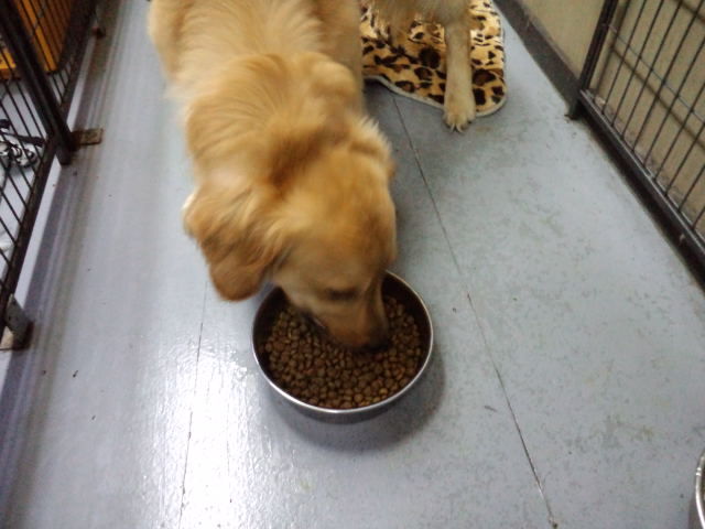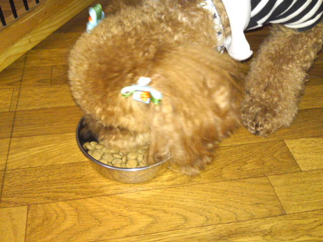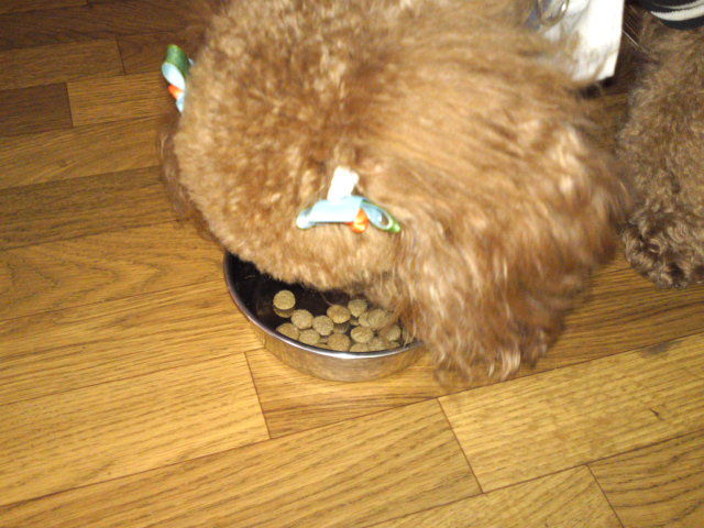ゴールデンのタイガーちゃん、しっかり完食しました。トイプーのムク君、口を付けません。