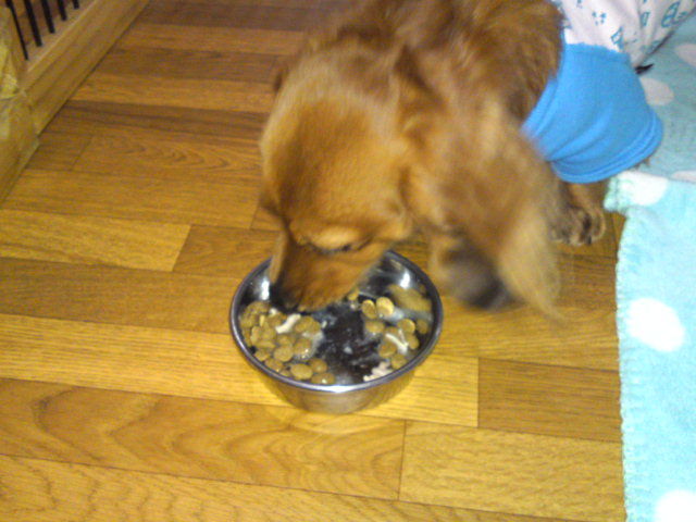 ダックスちゃんズのハヌルちゃんとりと君、しっかり完食しました。