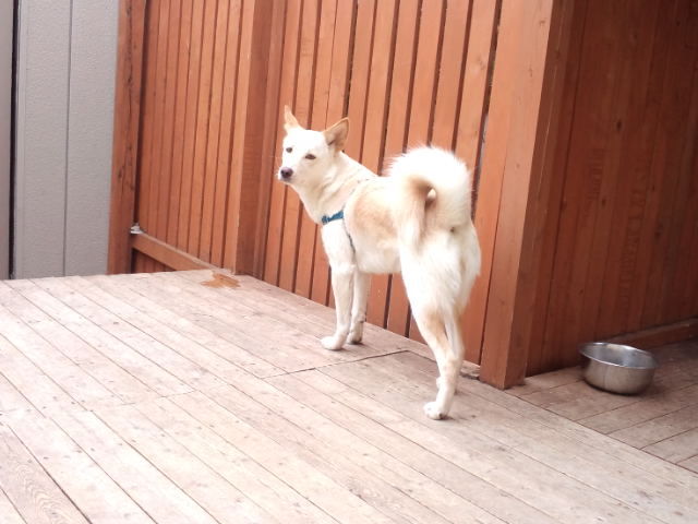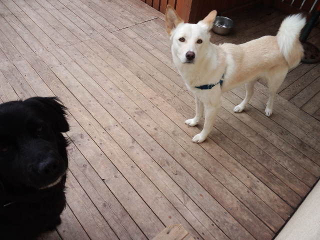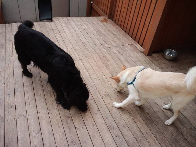 デッキに出たり、店内で骨ガムやジャーキーを食べたりしてます。