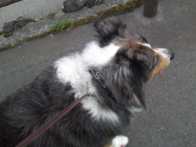 オージー・シェパードのマーブル君のオプション散歩です。 今日はバイパスの遊歩道を歩いてきました。