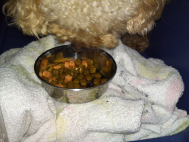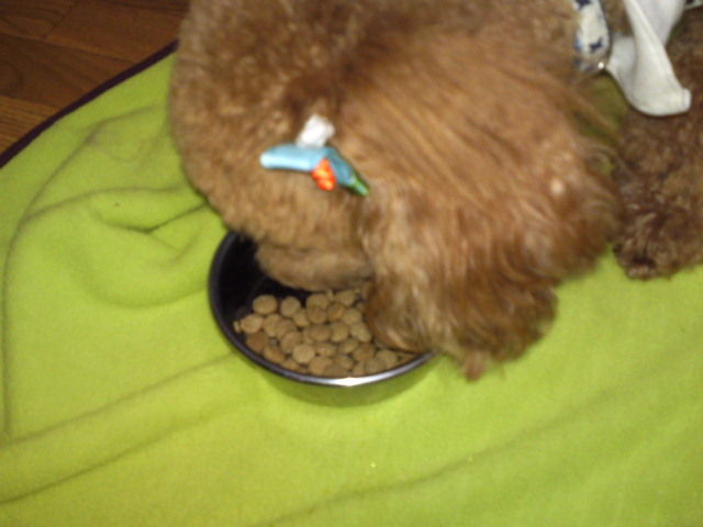 トイプーちゃんズのミルキー君、しっかり完食しました。モコちゃんは少し口を付けただけです。