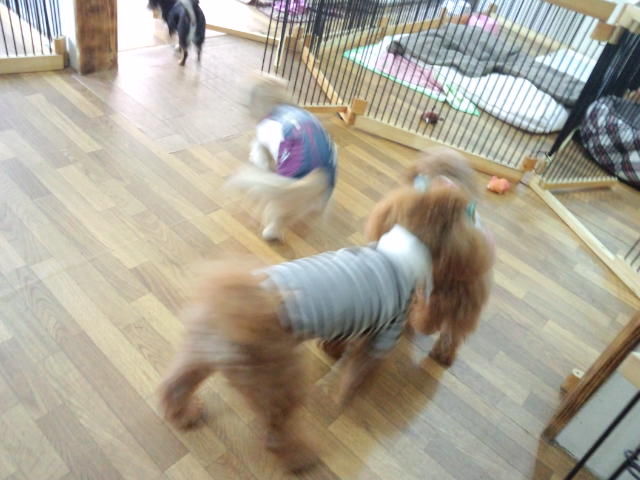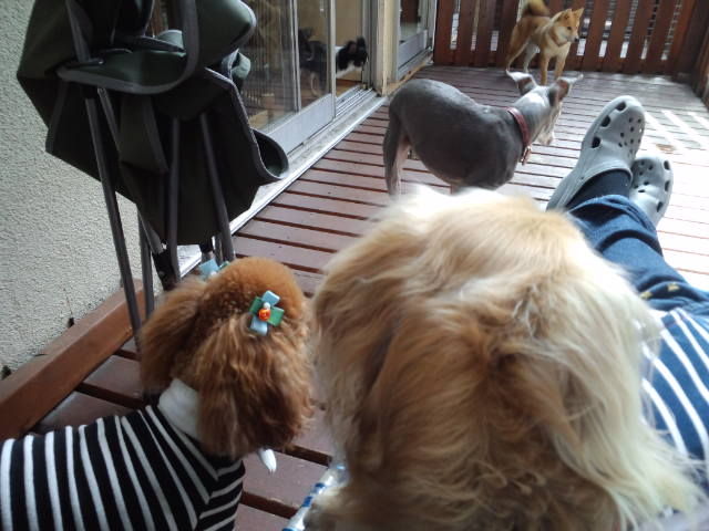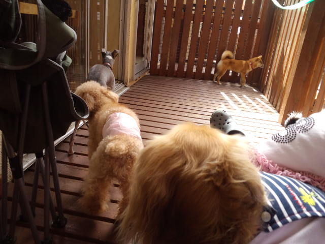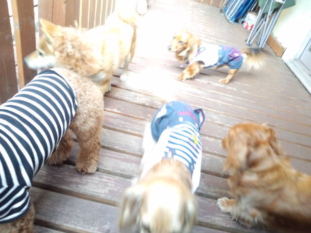 思い思いに遊ぶワンコ達、デッキでも駆け回ってます。