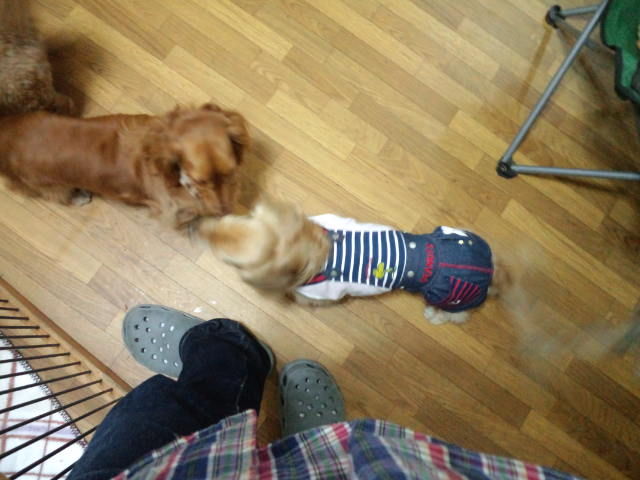 最初は寂しがってましたが、すぐにみんなを追い回してます。止まらないので顔の写真が撮れなくてゴメンなさい。