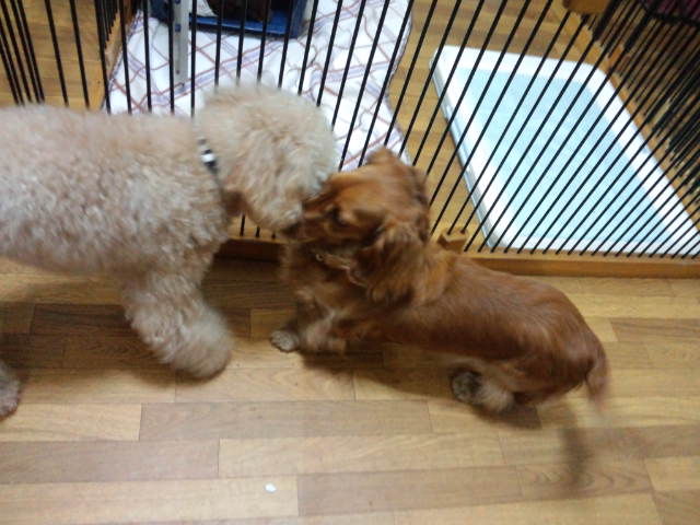 こちらも常連のダックスちゃんズ、ハヌルちゃんとりと君がチェックインしました。