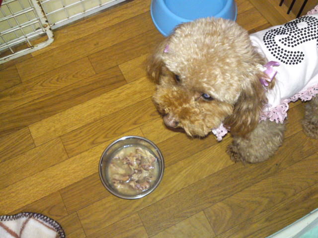 トイプーのモコちゃん、口を付けません。そのまま置いておきます。