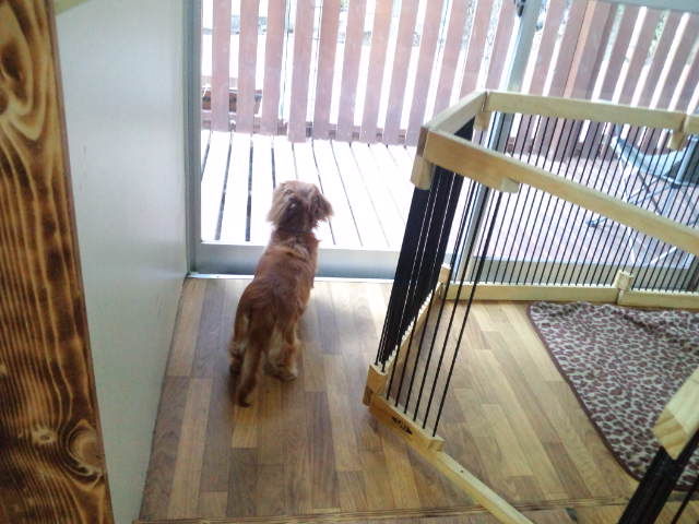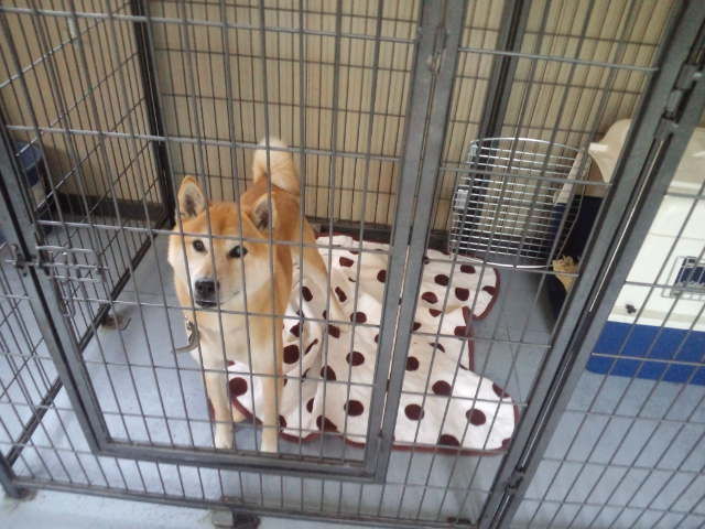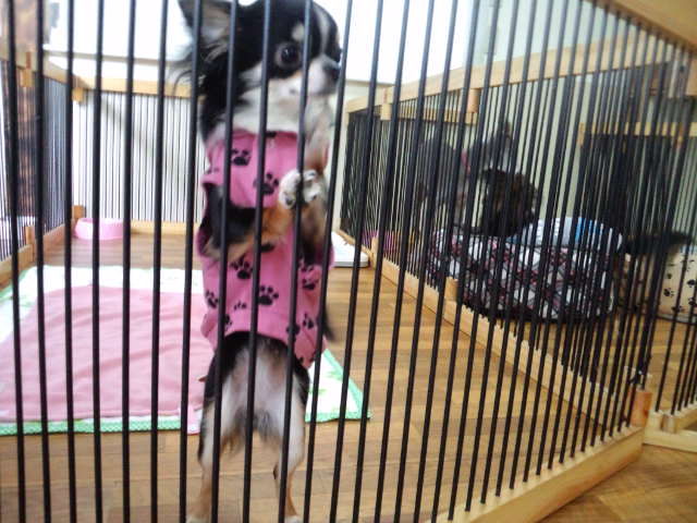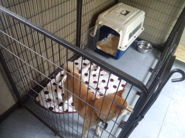 今年は飼い主さんの後を追い、脱走を計ってしまいます。とりあえず落ち着くまでサークルに居てもらいますね。