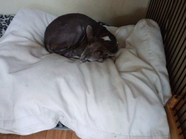 イタグレのジージョ君、夕べのご飯は完食してました。今朝は口を付けません。