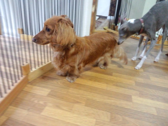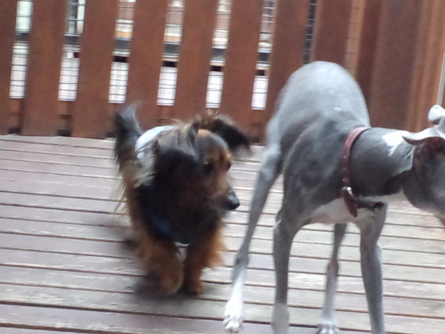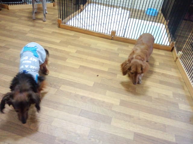 ダックスのジョン君はイタグレのジージョ君がお気に入り、ずっと後を付いてます。