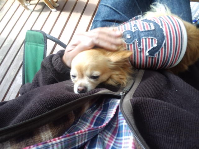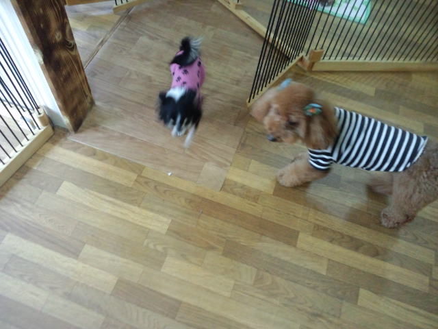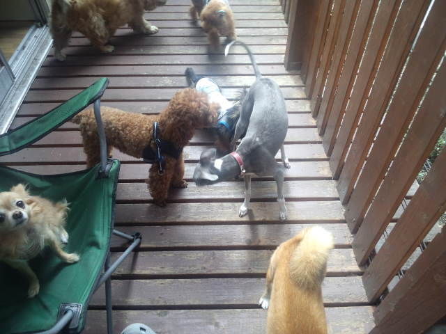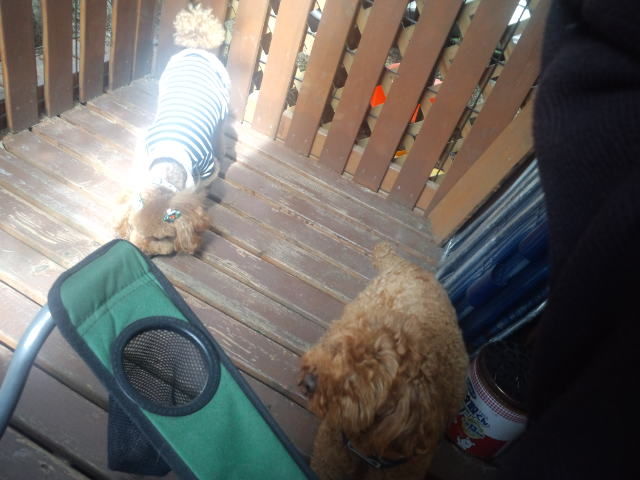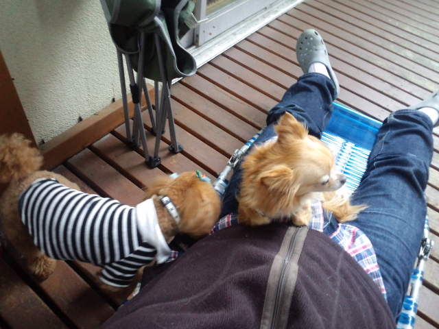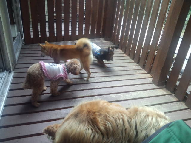 チワワの黒龍君と、トイプーのモコちゃんもマイペースです。