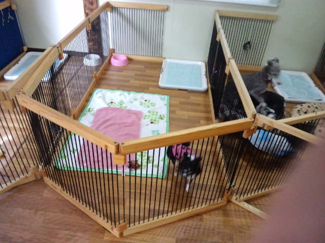 他のワンコは?って事でしたが、サークル越しに臭いを嗅ぎ合って、すぐに仲良くなれてます。
