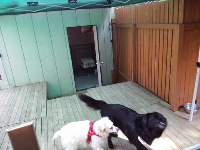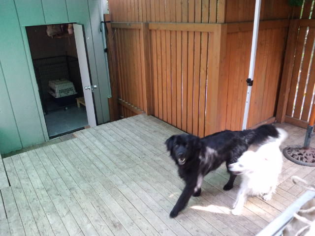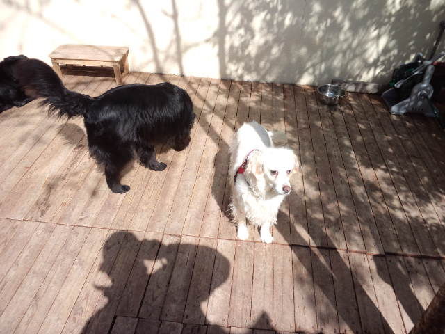 大型犬エリアではミックスのリヨンちゃんと大治郎が仲良くしてます。リヨンちゃんはご飯は食べませんが、ジャーキーをあげると喜んで食べてます。