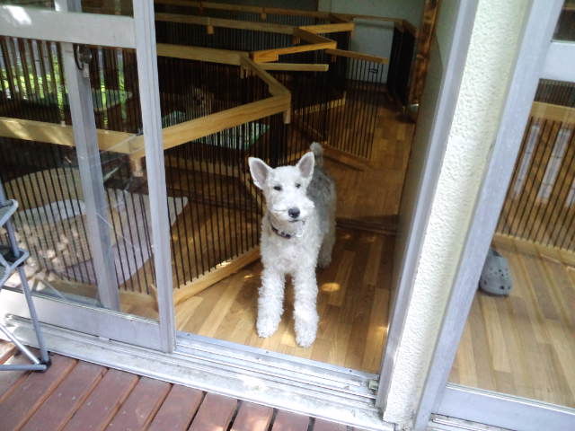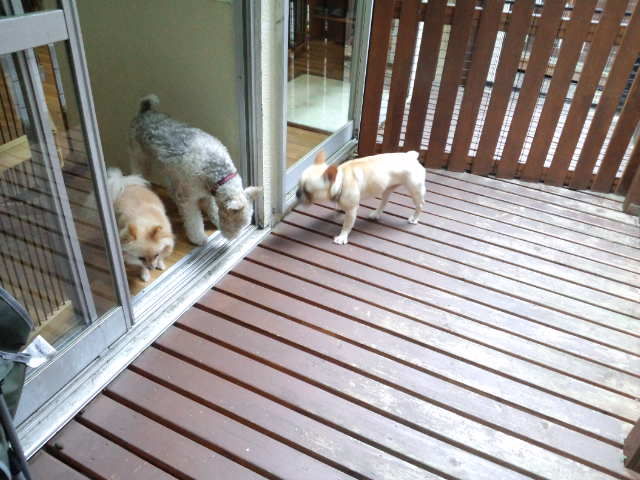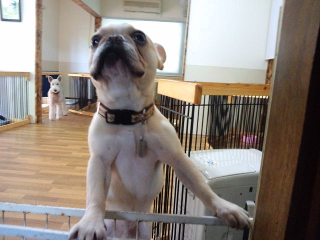 元気なのはフレブル金太郎君、店内やデッキを走り回ってます。