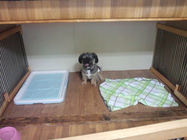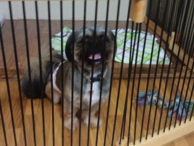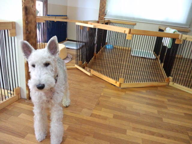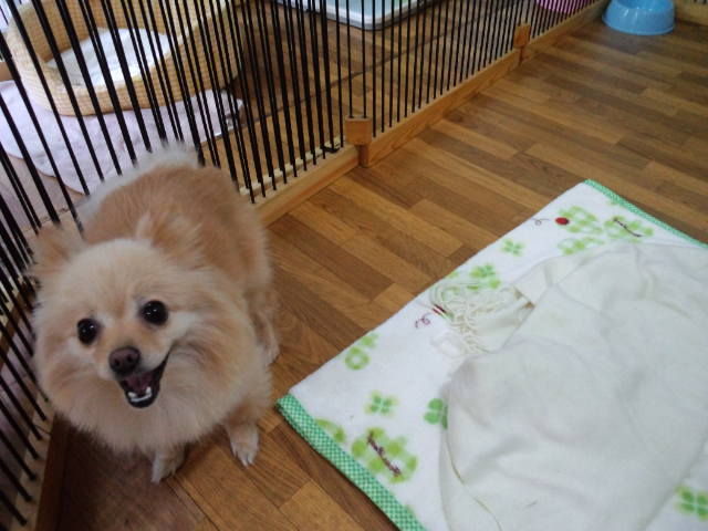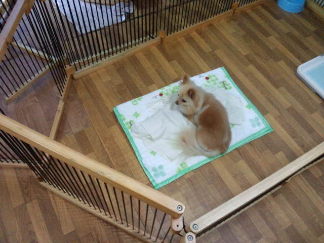 小型犬エリアではポメラニアンのポポちゃんはサークルで落ち着いてます。