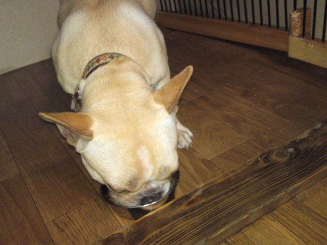 ミックスのリヨンちゃん、少し口を付けただけです。そのまま置いておきます。