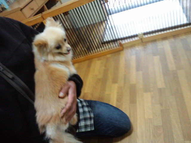 ポポちゃんはすぐに店長に抱っこをせがんできます。