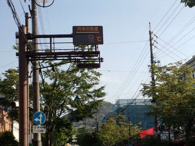 今朝の軽井沢の気温は9℃、天気は晴れてます。