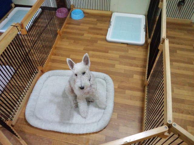 ミックスのリヨンちゃん、少し口を付けただけです。サークルの中でしばらく置いておきます。