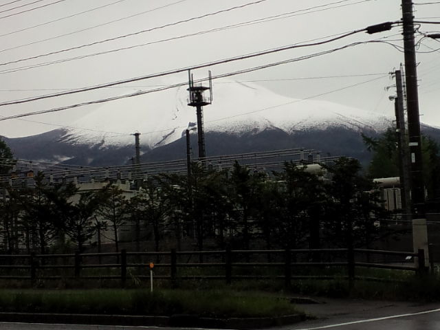 冷たい雨が降っている軽井沢、寒いと思ったら浅間山は雪が降ったみたいです。久々に白く雪化粧の浅間山です。