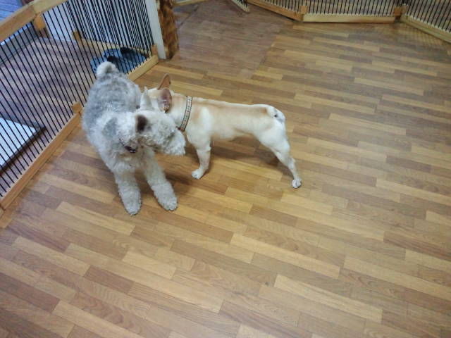 最初は小型犬エリアかな?って思いましたが、大型犬エリアの方が合っているみたいです。大治郎と仲良くしてますよ。