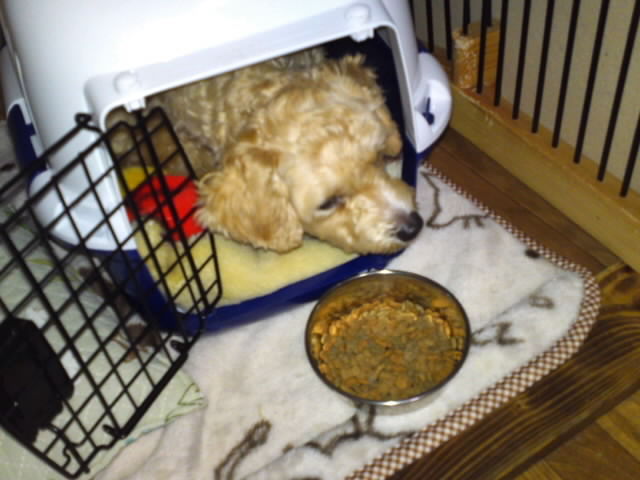 ミックスのすももちゃん、バリケンに籠もってます。ご飯は少し口を付けただけです。