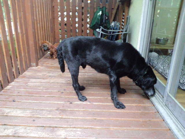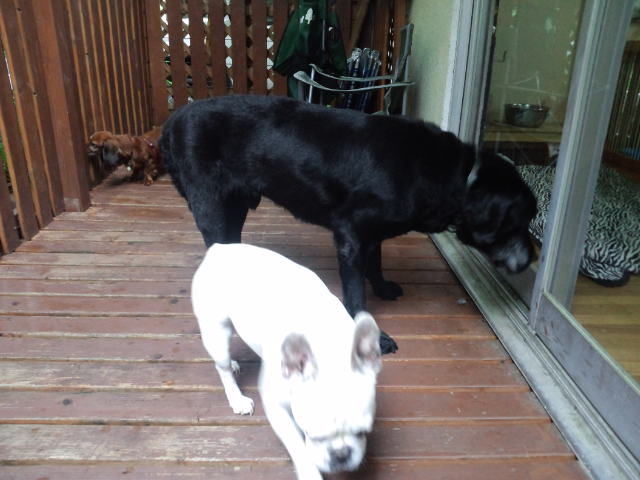 フレブルちゃんとダックス君はデッキに出てます。ブラッキー爺さんも短時間なら自立で動ける様になりました。