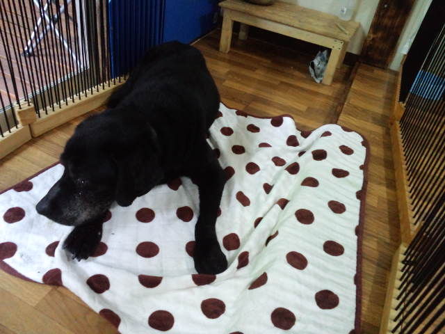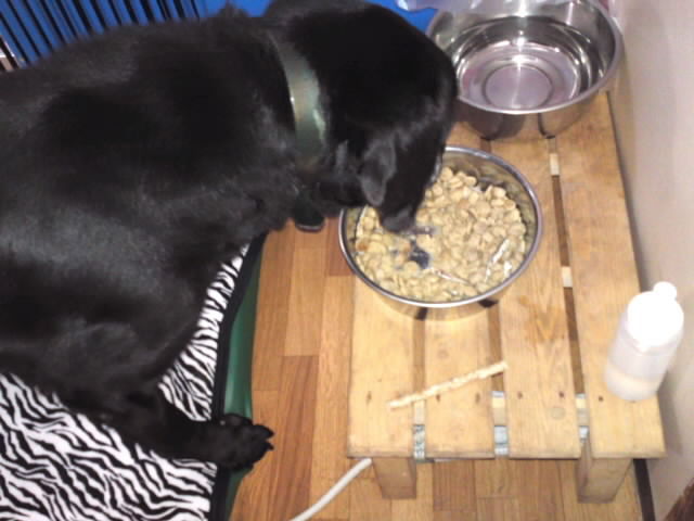 生涯預かりラブラドールのブラッキー爺さん、しっかり完食しました。寝たきり状態からすっかり立ち上がれるようになりました。自分で立ってご飯食べてます。