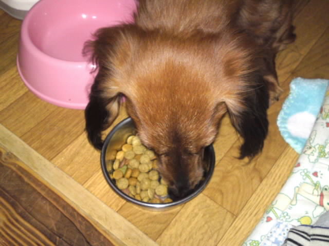 ミックスのすももちゃん、夕べは完食してました。今朝は少し口を付けただけです。